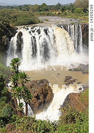 View to the valley with new bridge across mountain river Blue Nile near Debre Markos, Simien Mountains Amhara Region, Ethiopia.