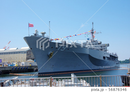 米軍横須賀基地に停泊する揚陸指揮艦ブルーリッジ