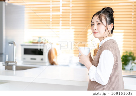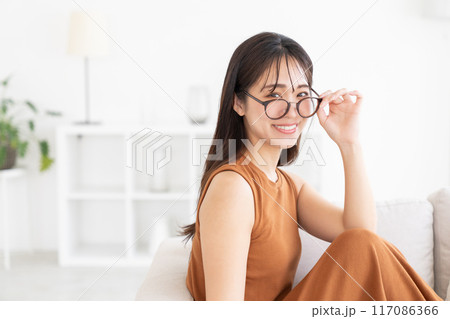 部屋でリラックスする若い女性
