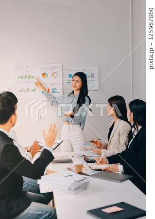 Business woman present business strategy plan to corporate colleagues in the office