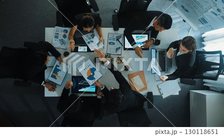 Top view of diverse people analysis financial data from chart. Directorate.
