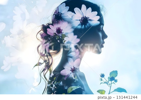 medium shot of a woman, stunning double exposure effect