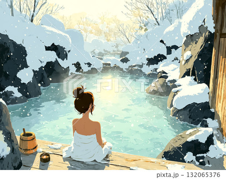 美優シリーズ:冬の温泉でリラックスする美優、後ろ姿