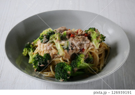 ツナとブロッコリーのペペロンチーノ