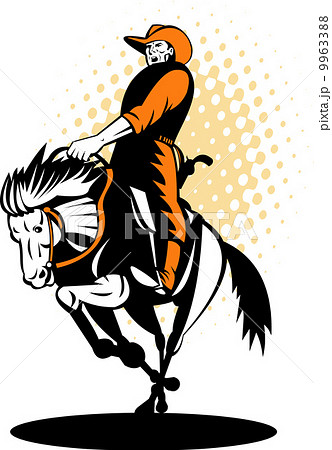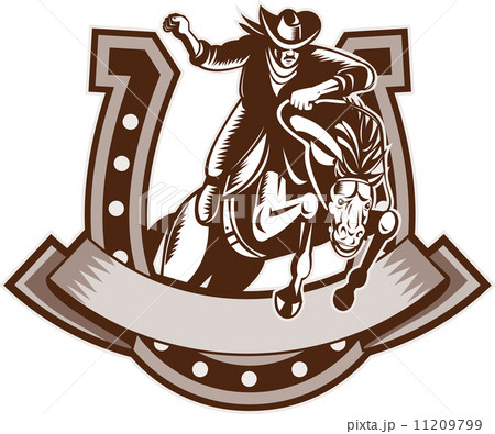 Rodeo cowboy riding bronco horse horseshoe