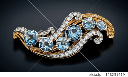 Aquamarine Brooch Design Featuring Elegant Sea Wave Motif and Sparkling Gems