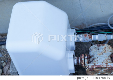 室外に置いてある家庭用ポンプ