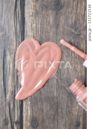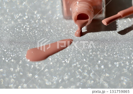 容器からこぼれたベージュピンクのマニキュア