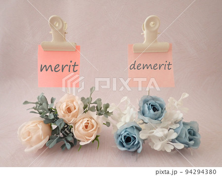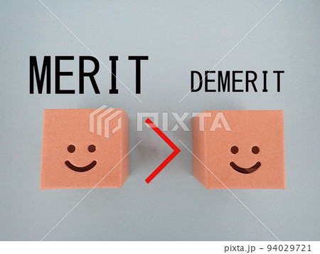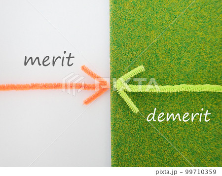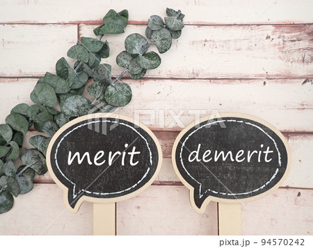 ボードにメリットデメリットの文字と数字 箇条書き コピースペース