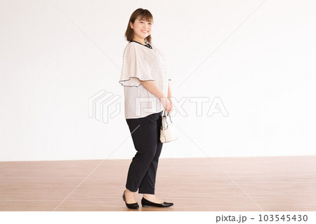 ぽっちゃり体型の若い女性 ビジネスカジュアル プラスサイズモデル