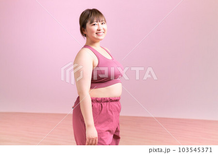 トレーニングをするぽっちゃり体型の若い女性 プラスサイズモデル イメージ
