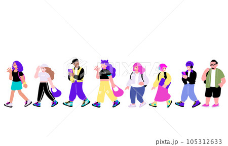 多国籍社会、ダイバーシティをイメージする多文化の人々のグループのイラスト