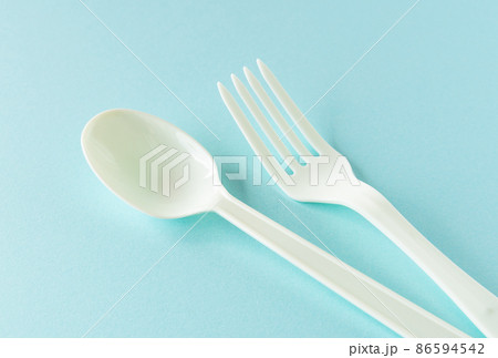 プラスチック製品 プラスチックのフォークとスプーンと皿 イメージ素材 環境問題