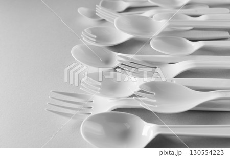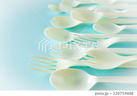 プラスチック製品 プラスチックのフォークとスプーン イメージ素材 環境問題
