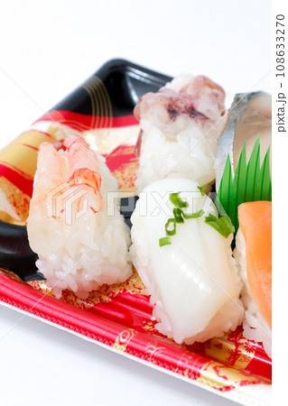 お持ち帰りのお寿司のパック【白背景・切り抜き】