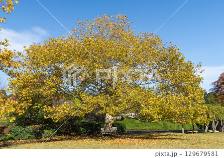 プラタナスの黄葉 秋の風景