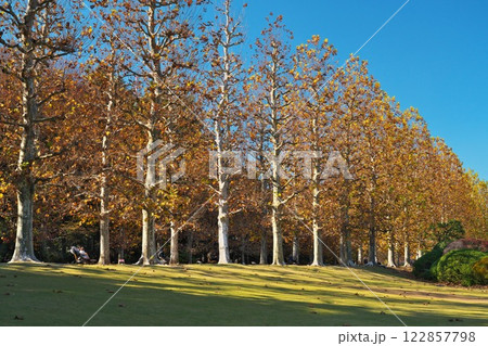 湯檜曽公園 秋の風景 プラタナスの木