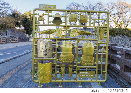 静岡市、駿府城前の徳川家康公甲冑のプラモニュメント