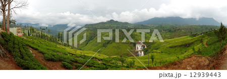 The panorama of tea plantations in Nuwara Eliya, Sri Lanka
