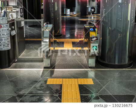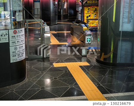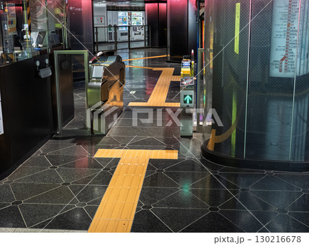 鉄道駅の自動改札と点字ブロック