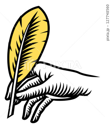 Quill Feather Ink Pen Hand Suit Vintage Woodcut