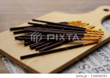 チョコレートがコーティングされた細長いプレッツェルのお菓子箱のいろいろなイラスト