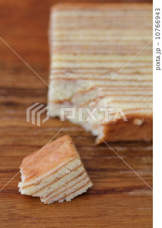 箱に入れてあるカットしたバームクーヘン 焼き菓子