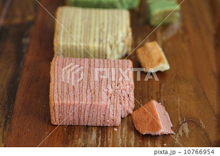 一口ちぎった3種類のバームクーヘン 焼き菓子