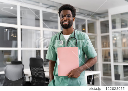 Portrait of female African American doctor with Stethoscope in her office at clinic.