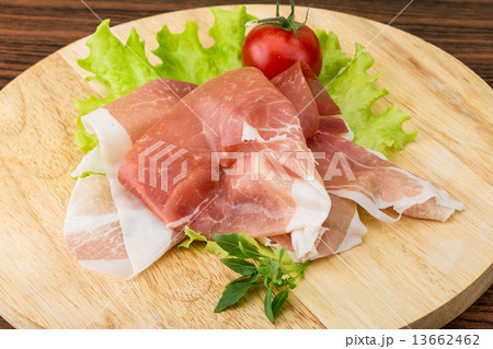 Italian prosciutto crudo or spanish jamon. Jerked meat serrano ham tasty