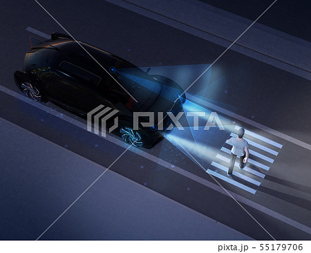 夜道路を横断する歩行者の為、クルマのライトで横断歩道を投影する。スマートヘッドライトコンセプト