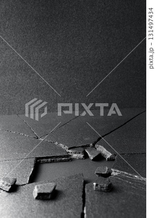 黒い割れた地面と白い壁