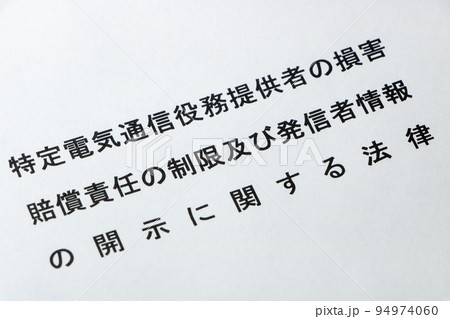 「特定電気通信役務提供者の損害賠償責任の制限及び発信者情報の開示に関する法律」の文字。
