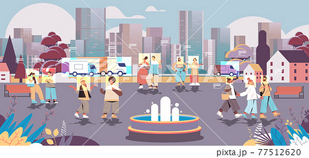 detection and identification of people in urban park facial recognition system AI analyze big data concept