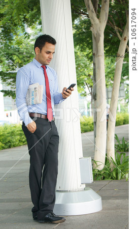 Businessman text with cellphone