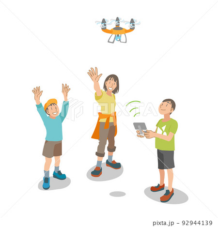 ドローンの操縦を楽しむ父親と子供のイラスト