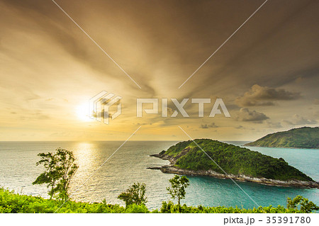 Nature view of Laem promthep cape Beautiful sunset or sunrise sky scenery in andaman sea, Amazing seascape in phuket thailand Beautiful nature background