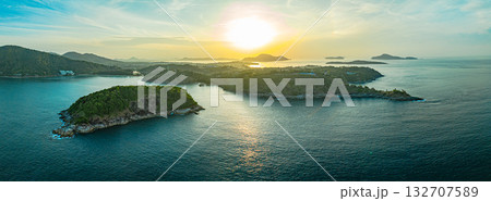 Aerial view panorama of Phromthep cape at sunrise, Phuket, Thailand