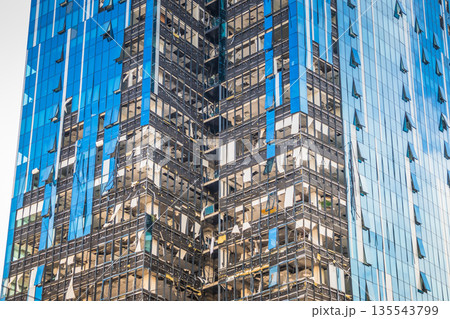 Russia's military aggression against Ukraine. Business center 101 TOWER civilian facility after a missile airstrike by russian troops in the Kyiv, Ukrainian capital