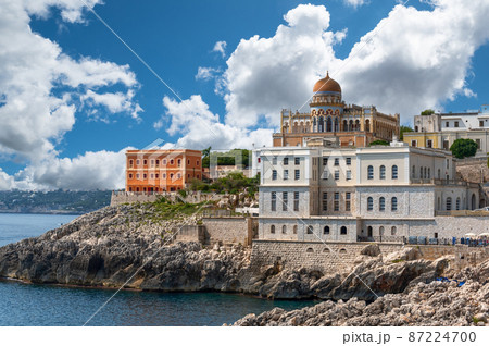 Santa Cesarea terme, Salento, Puglia, Italy. Stunning view of the coastal town. Villa Sticchi stands out with its Moorish architectural style with Islamic influences.