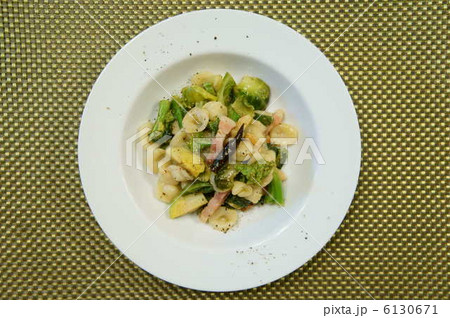 菜の花、芽キャベツとパンチェッタの手打ちオレキエッテ