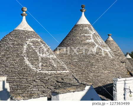 アルベロベッロのとんがり屋根に描かれたシンボルマーク