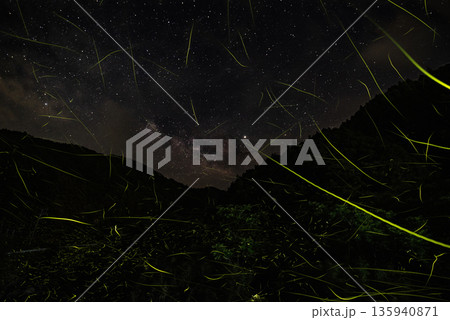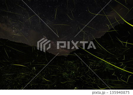 三重県 星空とホタルの舞う風景・夏イメージ