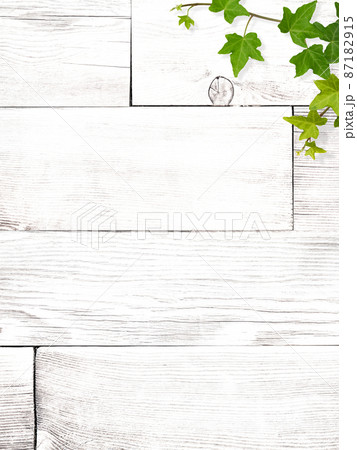 白い木目とアイビーのナチュラルな背景