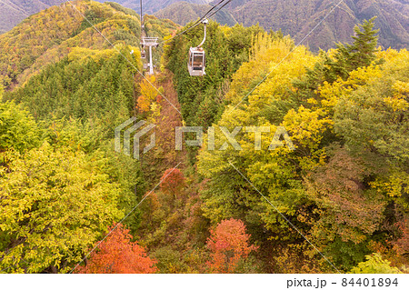 長野県阿智村 紅葉に包まれたヘブンスそのはらのゴンドラ