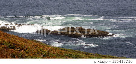 Waves Crash Against the Rocky Coastline of La Coruna, Spain Near the Tower of Hercules