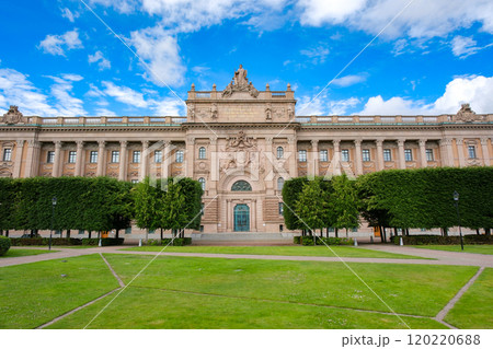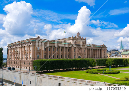 スウェーデン ストックホルム 夕暮れの国会議事堂