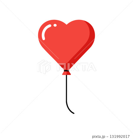 Heart shaped red balloon illustration with black string vector icon