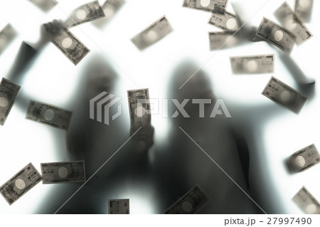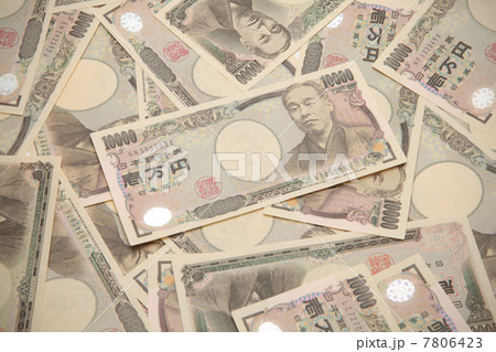空飛ぶ千円札のイラスト、背景素材