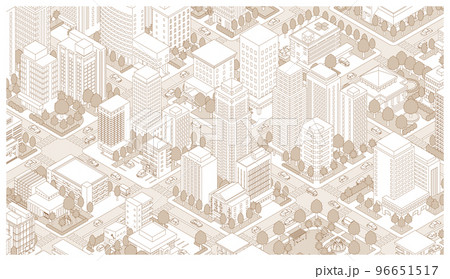 街並みの立体図. 都市の景観. 線画のイラスト.